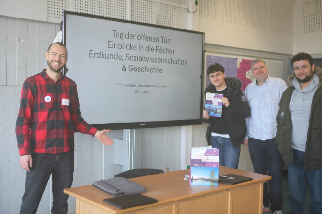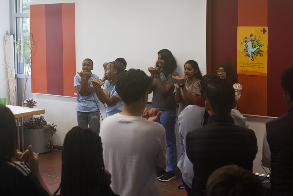 Am 17.09.2025 war ein aufregender Tag an der Erich Kästner Gesamtschule. Bereits zum zweiten Mal war die Kindernothilfe mit internationalen Gästen zu Besuch. Diesmal ging es um einen Vortrag und Austausch zum Thema Demokratie und Klimakrise – Wie können sich junge Leute aktiv in den Klimaschutz einbringen? Möglich geworden war dieses Event durch die Organisation Engagement Global, die mit Mitteln des BMZ gefördert wird. Das Bundesministerium für wirtschaftliche Zusammenarbeit und Entwicklung (BMZ) fördert Vorhaben der entwicklungspolitischen Informations- und Bildungsarbeit in Deutschland unter anderem durch das Programm „Engagiert die Welt gestalten”.