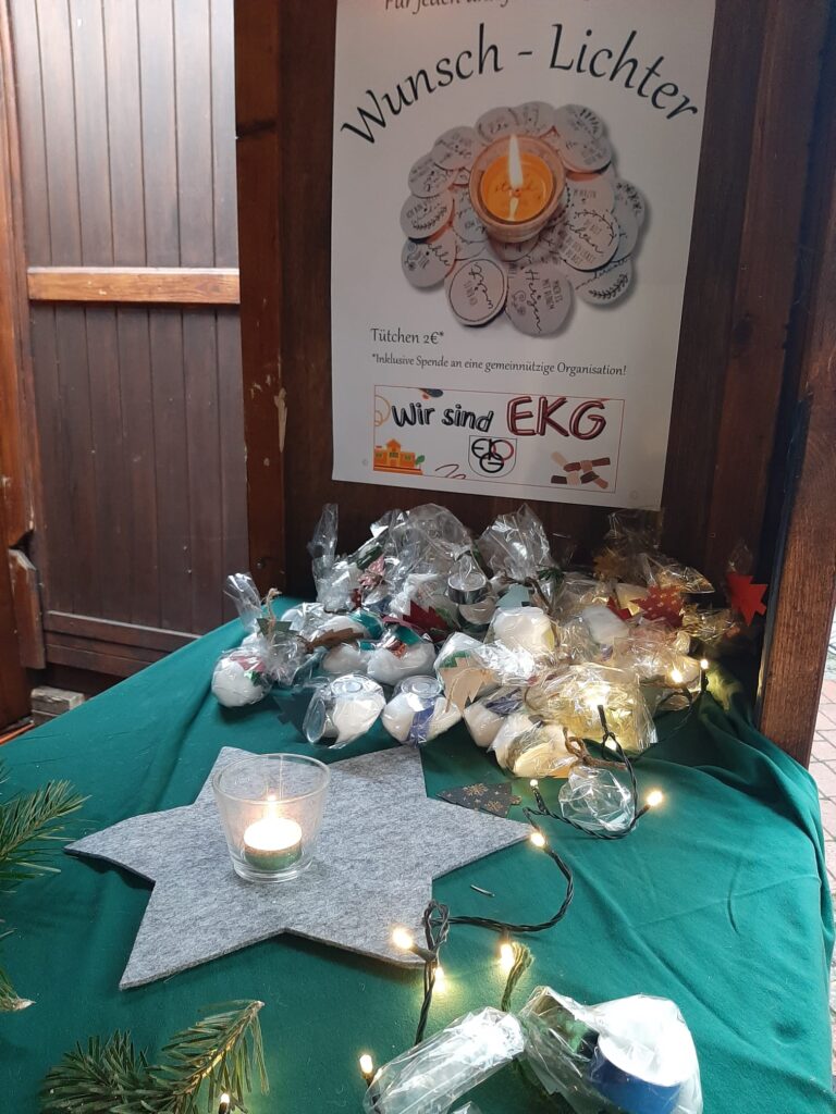 Wir bedanken uns bei allen, die ein Wunschlicht gekauft haben und damit ein Teil unserer Aktion geworden sind. Wir wünschen der gesamten Erich Kästner Gesamtschule schöne Ferien, schöne Feiertage und einen guten Start ins neue Jahr 2026.