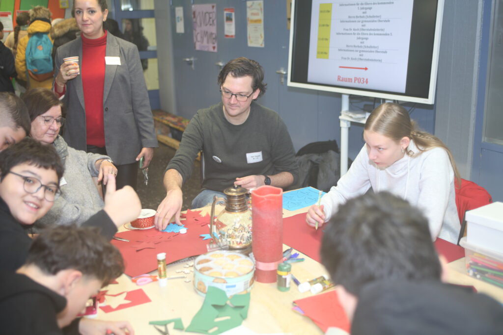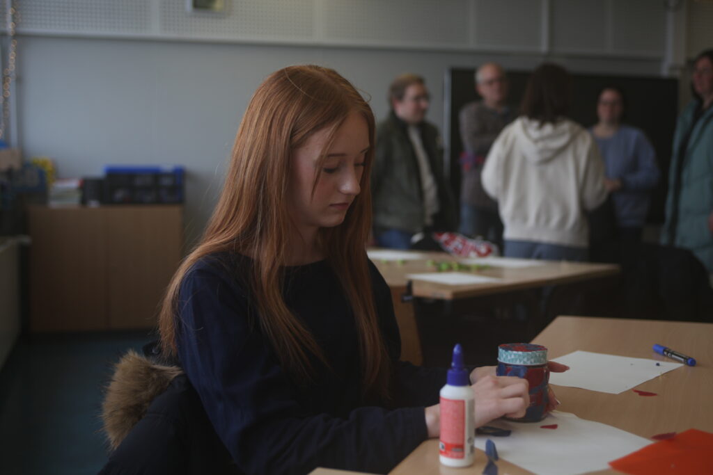 Bereits nach den Herbstferien hatten beide Klassen freitags nach dem Unterricht freiwillig ihre Zeit investiert und insgesamt 1000 Wunschteelichter hergestellt, mit Liebe verpackt und selbstgemachten Tannenbaumanhängern versehen. Das Ziel: alle Teelichter auf dem Tag der offenen Tür und dem Weihnachtsmarkt in Steele am 3.12.25 zu verkaufen. Der Verkauf war ein voller Erfolg. Mit viel Herzblut und Engagement erklärten die Kids immer und immer wieder die Aktion und auch, warum sie in diesem Jahr für Lichtblicke spenden wollen. Das Engagement zahlte sich aus. Am Ende wurden tatsächlich nicht nur alle Lichterpäckchen verkauft, sondern es gab eine Nachfrage darüber hinaus. Alle haben sich riesig gefreut, dass die Aktion so gut ankommt. Der Besuch bei Radio Essen war ein super Abschluss und hat allen großen Spaß gemacht.