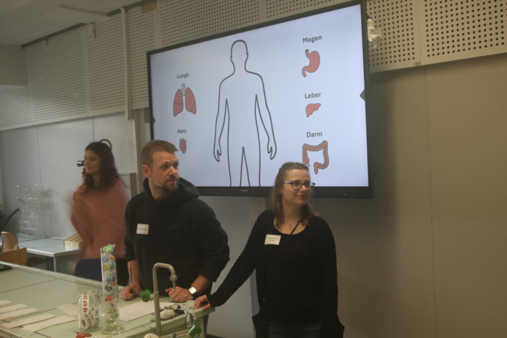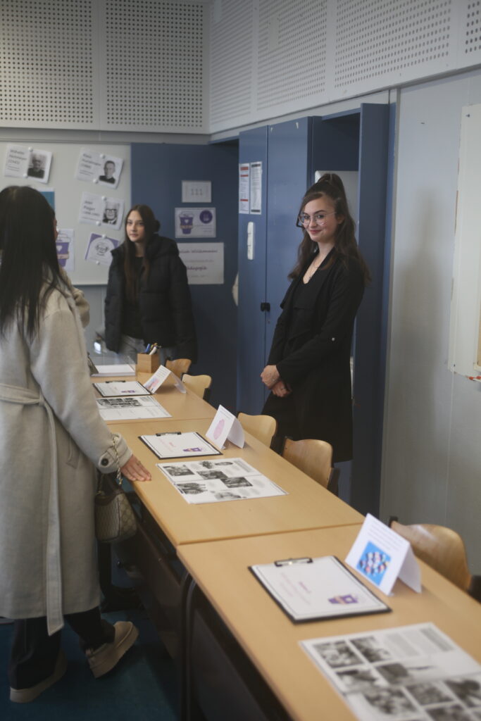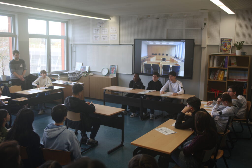 Am Ende wurden die Ergebnisse vor einem großen Publikum in der Aula präsentiert. Dazu gehörten die EF, einige Kurse des 10. Jahrgangs (bilingualer Kurs), die Q2 sowie Lehrerinnen und Lehrer. Die Moderation übernahmen Herr Lux und Frau Roick, die durch das Programm führten.